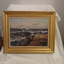 En vacker tavla med ett motiv av en man med pipa i ett landskap. Signaturen finns nere i högra hörnet. Ramstorlek 34/29 cm