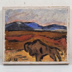 Målning på gjuten botten - Signerad LE - Oidentifierad konstnär