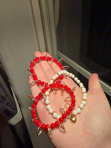 Med ett äkta Edblad guld hjärta med vita pärlor och 2 röda pärlor armband med massor med silver och guld hjärtan.