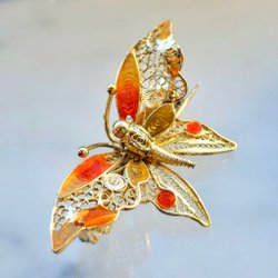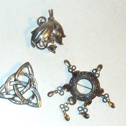 Broscher förknippas ofta med ädelstenar, guld och silver. Trenderna genom årtiondena har dock även lämnat plats för retrobroscher och färgglada plastvarianter. Broscher finns i ett närmast oändligt antal olika varianter, både trendiga och klassiska. I Traderas utbud av begagnade broscher kan man hitta broscher silver och broscher guld. I allra bästa fall finns en Chanel brosch eller två ute för auktion – en dröm för den som gillar att klä sig klassiskt stilrent. Den som vågar ta ut svängarna har ofta ännu mer att hämta. Broscher, smycken och kläder är ett intresse som delas av många. Individuella preferenser styr garderobens innehåll och dessa förändras över tid. Titta igenom utbudet av aktiva annonser så kan du upptäcka broscher som gjort sitt i en persons smyckesgarderob, men som blir huvudnumret i din. Hos Tradera har du möjlighet att hitta begagnade broscher i alla prisklasser, från slutsålda varianter från budgetkedjorna till diamantprydda varianter från välkända juvelerare.