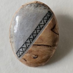 Liten brosch i renhorn från norra Finland. Rund med diameter 16 mm.