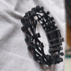 I fint skick ca 4 cm bred upptill och ca 5 cm vid längsta hänget. Material okänt