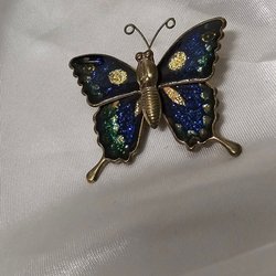 Den här broschen i form av en fjäril är ca 4 × 3.5 cm.