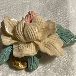 Fin brosch med dekorativa stenar. Den ena har fått sig en törn, men sitter bra på plats.