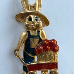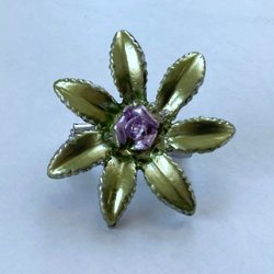 Cirka 4.5 x 7 cm. Kraftfull, guldfärgad metall. Nästan hela kroppen fylld med mini-stenar, känns som glas. Broschnål med lås. Köpt från Kanada.