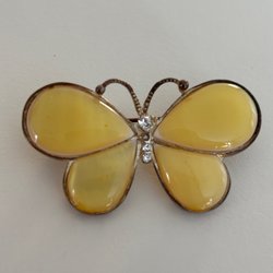 Den här broschen i form av en fjäril är ca 4 × 3.5 cm.