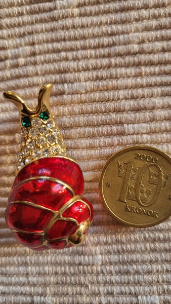 (se 10 kroners myntet för att få uppfattning om storleken på broschen)