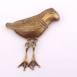 Ett spänne/brosch i mässing tror jag. En kopia på ett vikinga-/medeltidsspänne, mycket fint och billigt.