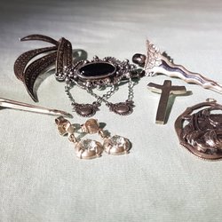 Broscher förknippas ofta med ädelstenar, guld och silver. Trenderna genom årtiondena har dock även lämnat plats för retrobroscher och färgglada plastvarianter. Broscher finns i ett närmast oändligt antal olika varianter, både trendiga och klassiska. I Traderas utbud av begagnade broscher kan man hitta broscher silver och broscher guld. I allra bästa fall finns en Chanel brosch eller två ute för auktion – en dröm för den som gillar att klä sig klassiskt stilrent. Den som vågar ta ut svängarna har ofta ännu mer att hämta. Broscher, smycken och kläder är ett intresse som delas av många. Individuella preferenser styr garderobens innehåll och dessa förändras över tid. Titta igenom utbudet av aktiva annonser så kan du upptäcka broscher som gjort sitt i en persons smyckesgarderob, men som blir huvudnumret i din. Hos Tradera har du möjlighet att hitta begagnade broscher i alla prisklasser, från slutsålda varianter från budgetkedjorna till diamantprydda varianter från välkända juvelerare.