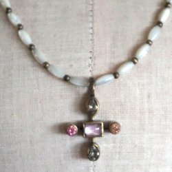 Ett vackert halsband från Dyrberg/Kern med en silverfärgad ormlänk och ett dekorativt hänge med stenar i olika storlekar. Halsbandet kommer i en svart dustbag märkt Dyrberg/Kern.