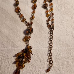 Ett vackert halsband med bruna pärlor och dekorativa silverfärgade detaljer. Halsbandet har en unik design som ger en elegant touch. Vintage .