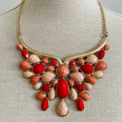 Ett vackert halsband med ett kors som hänge. Halsbandet har detaljer med rosa stenar och dekorativa metallpärlor.
