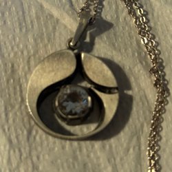 Väldigt vackert halsband, lång fin kedja. Så vackert med fjäril i mönstret. Skulle tippa på hänget är från 60 talet och kedjan något äldre.
