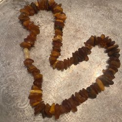 bärnstenssmycken som består av ett halsband,två armband och en ring.