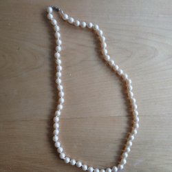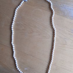 Läcker halsband med av guldmetall/pärlor. Total längd ca 80 cm. Toppskick!