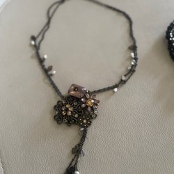 Otroligt snyggt, ovanligt och välgjort halsband som är svårt att hitta! Utfört i mörk metall och svarta platta pärlor.