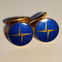 Detta är art deco revival eller mid-century modernist stil – geometriska former, svart/vitt/guld-kontraster och emalj var enormt populärt i costume jewelry från 1930-talet och framåt (t.ex. influerat av Chrysler Building, Empire State eller Bauhaus). Liknande pendants dyker upp som anonyma eller osignerade bitar från tillverkare i USA/Europa (t.ex. liknande Monet, Napier, Trifari eller tyska/österrikiska emaljproducenter), men ingen exakt match med signatur syns på bilderna.