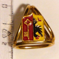 Elfenbensvit/krämfärgad emalj i den centrala V:n/chevronen.