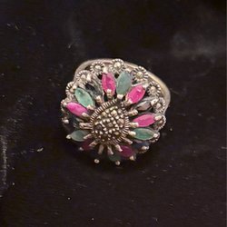 Elegant silverring med en vacker lila sten. Ringen är tillverkad i silver och har en unik design. Perfekt för den som söker en stilren och iögonfallande accessoar.