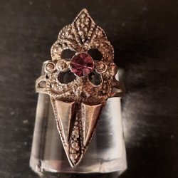 En silverring med en ljus sten.