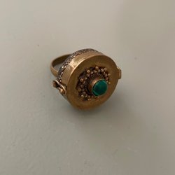 Guldig vacker ring med grön sten
