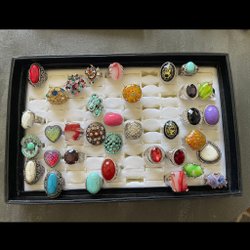 Ring i forskellige designs og farver. Justerbar størrelse.