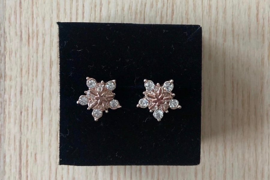 Ett par fina örhängen i form av snöflinga med strass. I mycket fint skick.