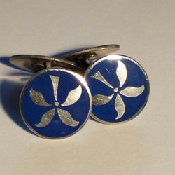 Sporrong är kända för högkvalitativ emaljarbete, ofta med svenska emblem (t.ex. tre kronor), men de gjorde också personliga eller dekorativa serier. Många vintage Sporrong-manschettknappar har just blå emalj med gulddekorationer.