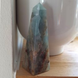 Med en hårdhet på 7 på Mohs skala är rosenkvarts en hållbar sten som tål hantering väl. Den högpolerade ytan framhäver stenens vackra färgnyanser och karakteristiska struktur, medan den distinkta obeliskformen gör den till en iögonfallande dekorationspryl.