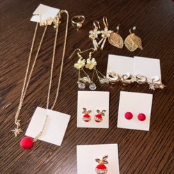Ett varierat urval av smycken. Inkluderar halsband, örhängen och ringar i olika stilar och utföranden.