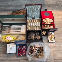 Ett parti med smycken Ett Armband är nytt i oöppnad förpackning. Likaså Ett par örhängen är nya.