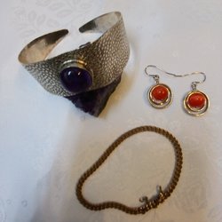 Armband med olika sorters pärlor och pärlemor och 2par orhängen.