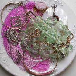 Ett parti med smycken Ett Armband är nytt i oöppnad förpackning. Likaså Ett par örhängen är nya.