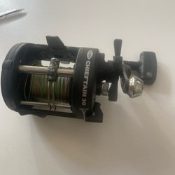 Fladen 30 rulle, tillverkad i Japan. Utrustad med en röd handtag och metallkomponenter. Passar för fiske och kan vara ett bra tillskott till din utrustning.