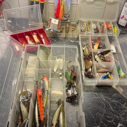 Ett urval av fisketillbehör inklusive beten, linor och krokar. Innehåller produkter från kända märken som Berkley och Owner. Passar för olika typer av fiske.