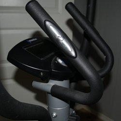 Crosstrainer med justerbart motstånd från 1 till 8. Displayen visar tid, hastighet, distans, kalorier och puls. Handtagen har inbyggda pulssensorer.