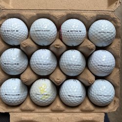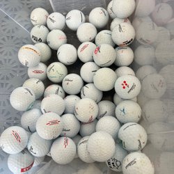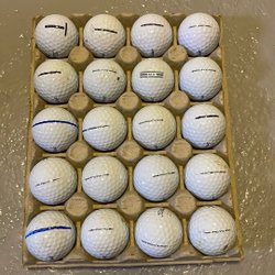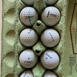 Ett parti med Titleist golfbollar. Totalt 30 bollar, varav 26 vita och 4 gula.