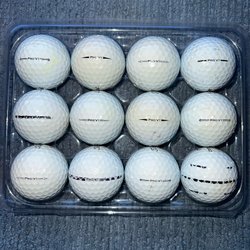 Ett dussin golfbollar från olika märken som Wilson, Pinnacle, Top-Flite, Srixon och Nike.