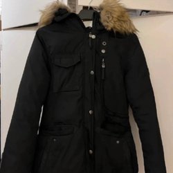 Använd vid 3 tillfällen så är i mycket gott skick, har dragkedjor i ärmar samt snölås i midjan. Finns fickor på insida och utsida som stängs med dragkedja samt ficka i ärm för liftkort. Finns en liten svart fläck vid ena fickan men kan med största sannolikhet fås bort med en tvätt och blir då som ny :) om ni önskar bild med jackan på så kan jag lösa det.