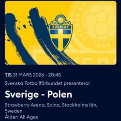 Säljer biljetter till matchen mot Polen. Har totalt 6 styckna. 5 bredvid varandra och 1 singel (2 rader nedanför).