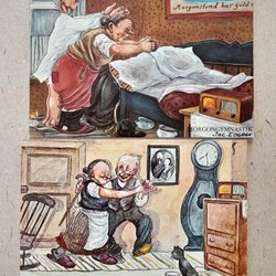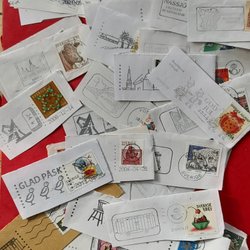 Tre gamla vykort med motiv av slott och byggnader. Vykorten är stämplade och postgångna.