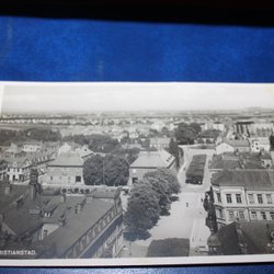 Ett svartvitt vykort med ett motiv av Lunds universitetsplats.