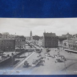 Ett vykort. Motivet är ett landskap med en sjö. Vykortet är poststämplat.