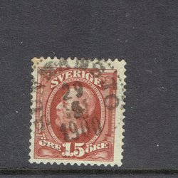 Ett vykort föreställande Malmö, Frans Suells Staty. Vykortet är poststämplat och frankerat med ett frimärke.