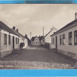 NYBRO. Emmatorp, gatubild med bild och telestolpar ca 1930-tal