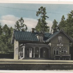 Vykort - Brotorp i Nerike stämplat Gemla 1910 på 5 öre OII. Hörnveck upp till höger med en liten skada på vykortet men annars väldigt trevligt vykort i färg.