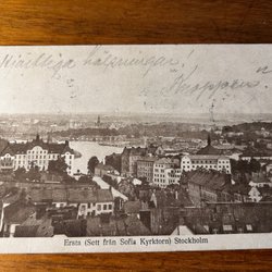 Ett vykort med motiv från Kellgrens Sanna (Allén). Vykortet är poststämplat 1920.