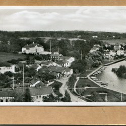 Ett vykort föreställande Södertälje strandbad. Axel Lundmarks Bokhandel förlag. Poststämpel 1921.