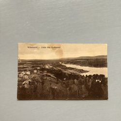 Vykort med motiv av Levanger, Norge. Kortet är daterat 1927-08-17 men ser inte ut som att det har skickats. Texten verkar utsuddad.