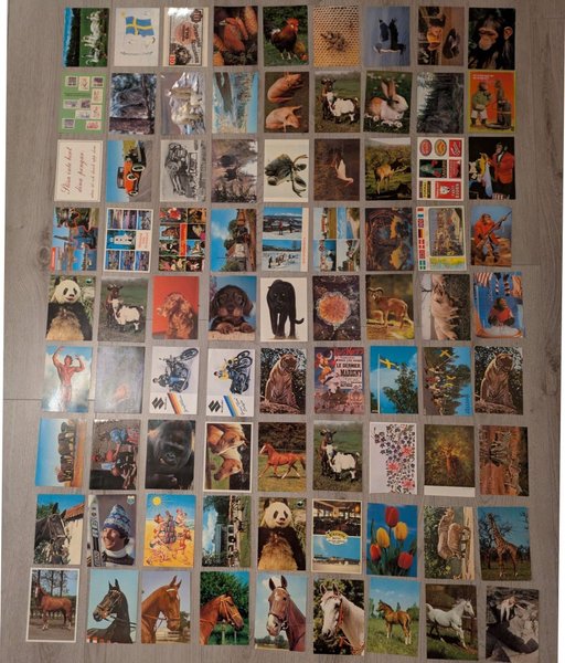 Ett sortiment av vykort med varierande motiv. Perfekt för samlare eller den som vill skicka en hälsning. Många har frimärke på med address skrivna på